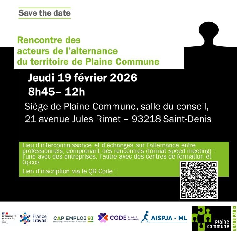 Siège de Plaine Commune 21 avenue Jules RimetPlaine Commune organise une matinée de rencontres entre entreprises, centres de formation, prescripteurs et acteurs de l’Éducation nationale, dédiée à l’alternance sur le territoire. L’événement se déroulera le jeudi 19 février 2026 de 8h45 à 12h au siège de Plaine Commune à Saint-Denis. Cette rencontre est l’occasion d’échanger en temps B to B, de renforcer […]