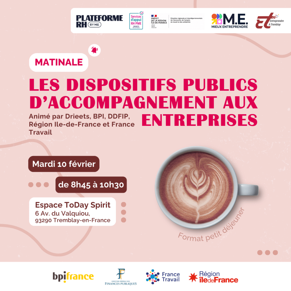 Cette matinale a pour objectif de vous présenter les principaux dispositifs publics d’accompagnement pour soutenir le développement de votre entreprise, vos recrutements et la gestion des situations économiques plus complexes.
