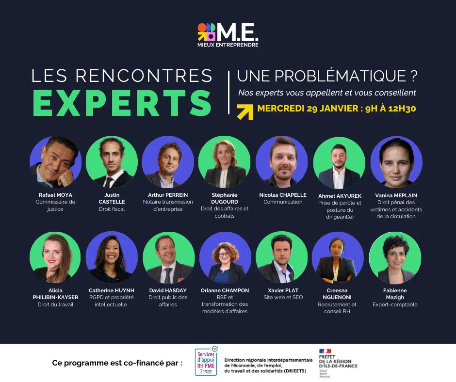 Une question, une problématique ? Nos experts vous appellent et vous conseillent tous les derniers mercredi de chaque mois ! Remplissez ce formulaire afin de réserver votre place pour "Les Rencontres experts", qui aura lieu le Mercredi 29 janvier 2025 par téléphone. Vous pourrez choisir parmi les sujets suivants : - Commissaire de justice - Droit […]