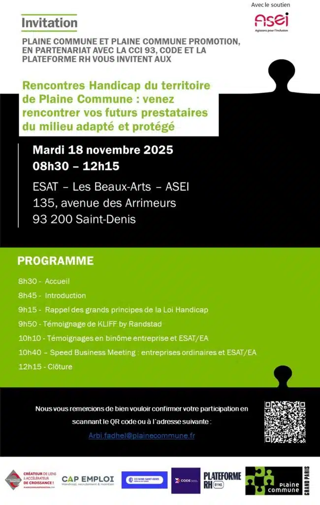 Dans le cadre de la Semaine européenne pour l’emploi des personnes handicapées, Plaine Commune et ses partenaires, vous invitent à un Speed Meeting Business.