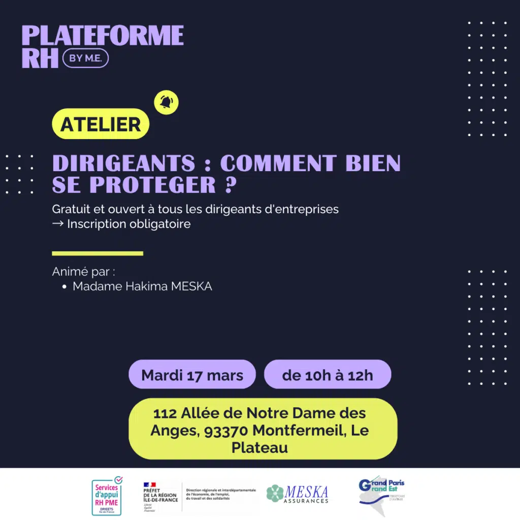 La Plateforme RH vous invite à notre atelier sur la protection sociale intitulé Dirigeants : comment bien se preparer ?
