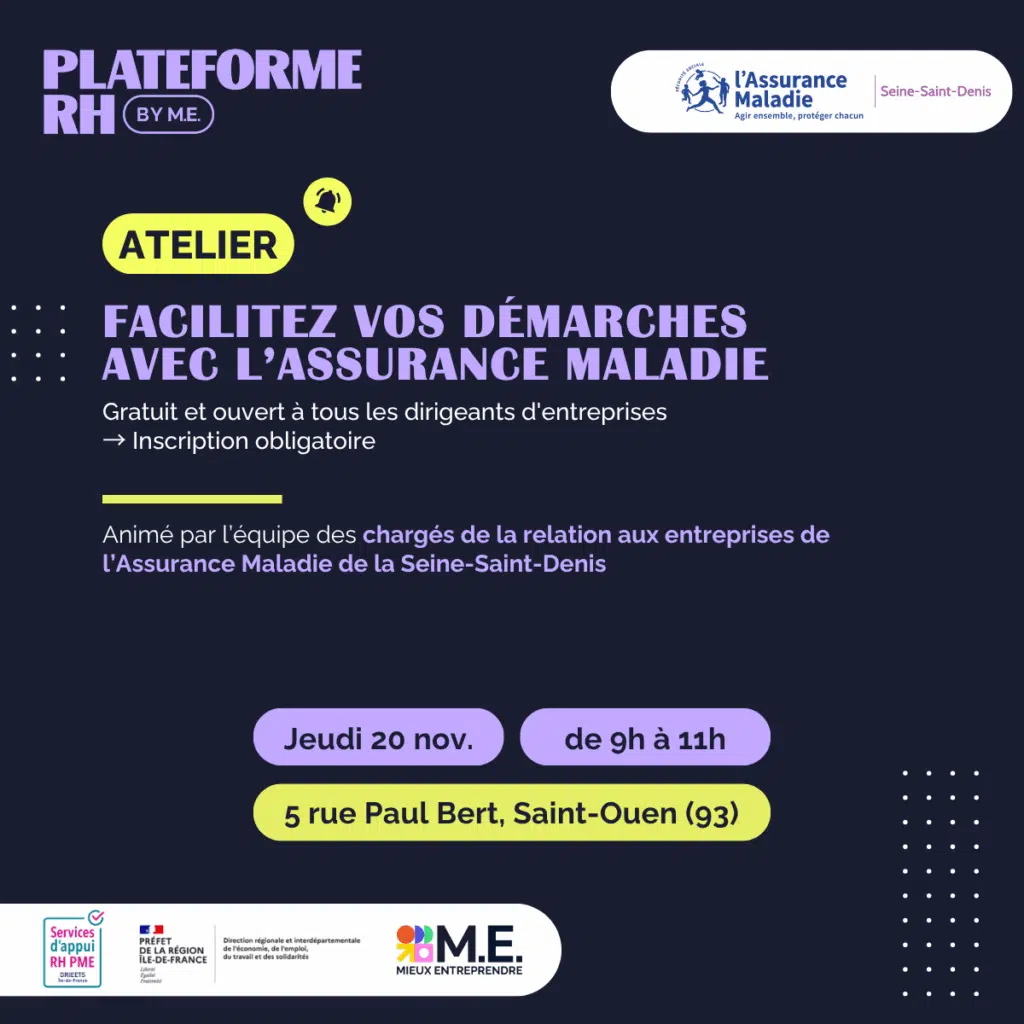 La Plateforme RH et l’Assurance Maladie de la Seine-Saint-Denis vous invitent à un atelier d’information dédié aux services de l’Assurance Maladie.